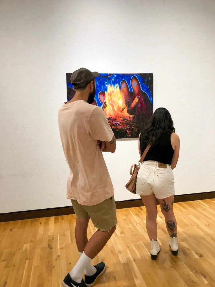 Hunter’s studio practice uses drawing, sculpture, painting, and performance as a means to explore the classification of Other. Alexis is well acquainted with the role of the Other due to her biracial background. She has checked the “other” box when classifying her race her entire life. Her work highlights the threshold between Black and white cultures she exists in. To have each work be an authentic expression of herself, Alexis incorporates personal materials and instruments, like her hair, in her paintings and drawings. She employs abstract figuration in typical social scenes to further communicate feelings of tension and unfamiliarity, providing an intimate look into her insecurities as an outsider. Through this vulnerability, Alexis can better understand herself and her identity.
