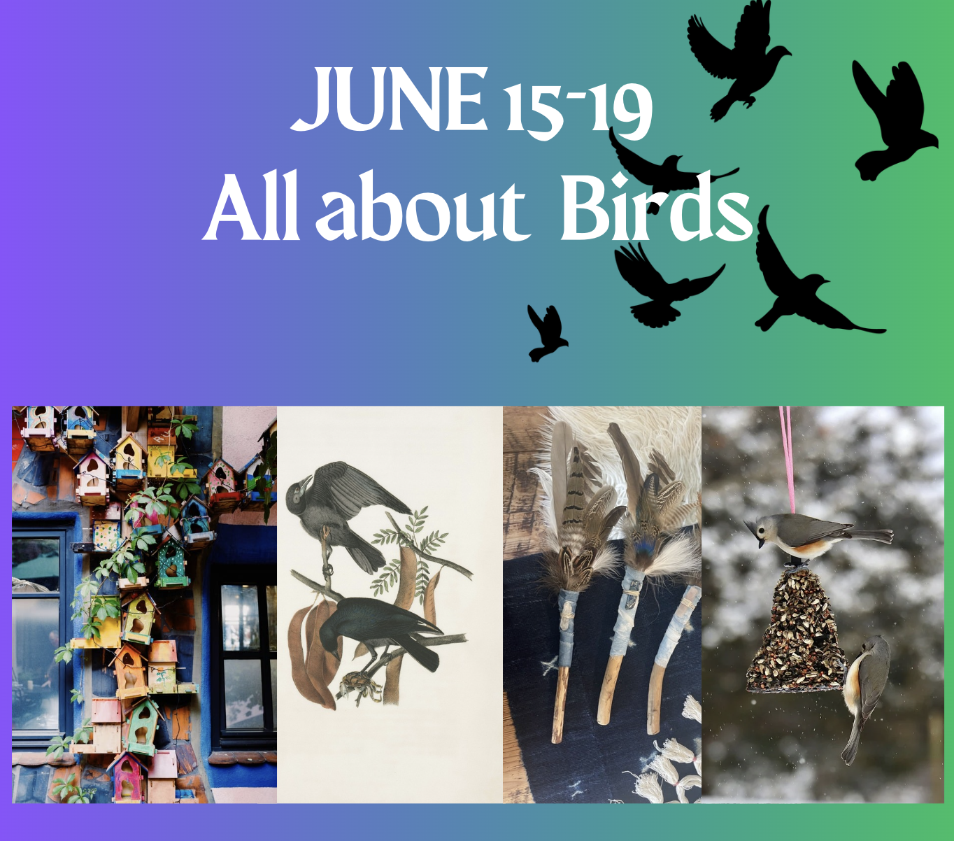This week, we're diving into the whimsical world of birds with a lineup of fun-filled activities! Get ready to make charming birdhouses and feeders, paint bird illustrations and learn about folklore to bring a magical touch to your creations. Craft bird food ornaments that will attract feathered friends, and learn to paint feathers with watercolors to capture their beauty on paper. Create enchanting feather wands and journal your experiences. Prepare for a week packed with creativity, wonder, and a delightful mix of nature and art!