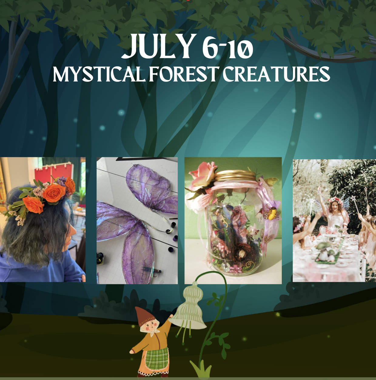 Join us on a magical adventure designed for kids ages 8 to 14! Each day, campers will immerse themselves in the enchanting realm of creation, guided by the wonders of Mother Nature.
