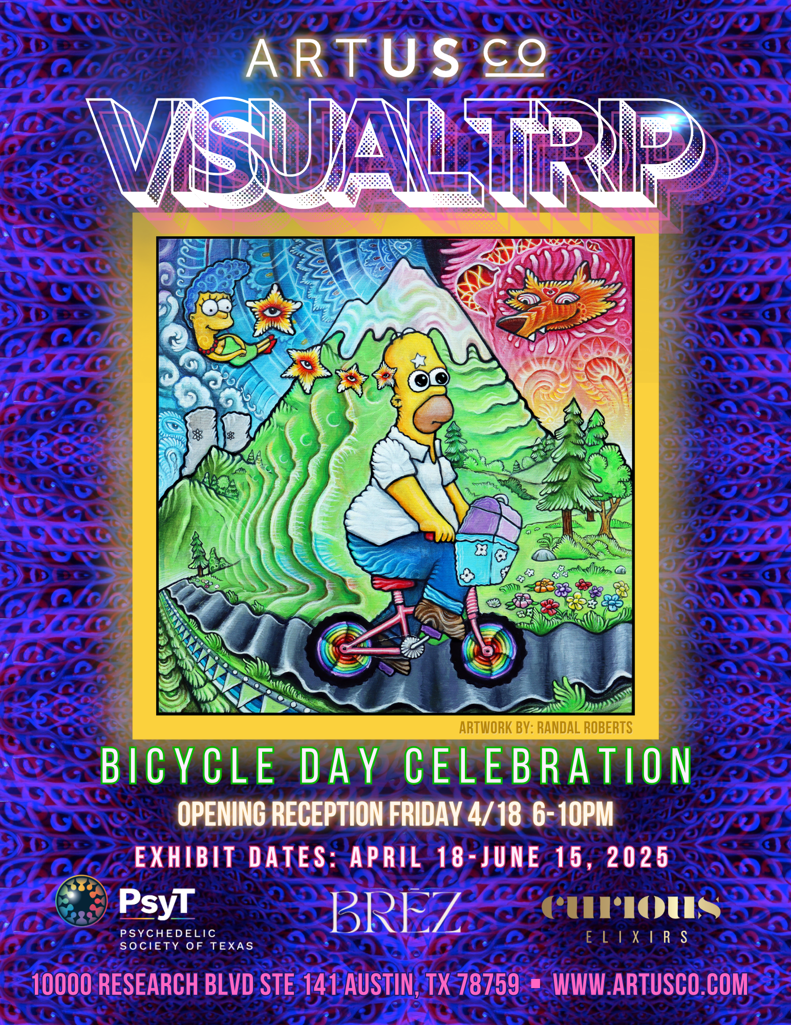 Visual Trip is a mind-expanding art exhibition celebrating the spirit of Bicycle Day, presented by ArtUs Co in collaboration with PsyTexas.
